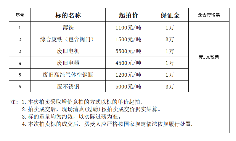 三、处置方式:资产按吨处置。